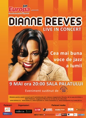 Tot duminica, de la 20:00, Sala Palatului isi va deschide portile pentru amatorii jazz-ului, care cu siguranta au aflat deja ce eveniment de amploare li s-a pregatit. Este vorba, pentru neinitiati, de cea mai bune voce feminina contemporana de jazz, cantareata Dianne Reeves. Grammy-urile trag la ea, iar cei care nu o recunosc dupa nume cu siguranta ii tin minte vocea, mai cu seama de pe soundtrack-ul filmului “Good Night and Good Luck”.