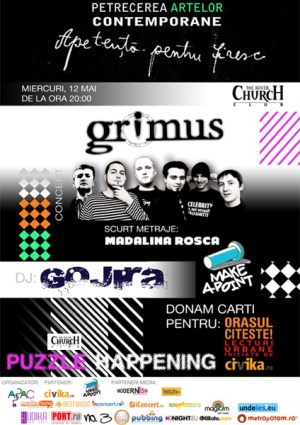 Miercuri, de la 20:00, in Silver Church, se tine o petrecere mai cu mot – sub titlul “Apetenta pentru firesc”, evenimentul serbeaza artele contemporane, invitand peste 400 de promotori ale lor. De atmosfera, in mod necesar una fun si imbibata cu muzica buna, se vor ocupa trupa Grimus si DJ Gojira. Pe latura artelor cinematografice, Madalina Rosca va aduce spre vizionarea colectiva 4 scurt-metraje alese in ton cu tema serii. Daca va hotarati sa veniti, aflati ca organizatorii sugereaza fiecarui beneficiar al distractiei de miercuri sa se prezinte cu o carte la purtator – care va fi mai apoi folosita in cadrul proiectului “Oraşul citeşte - Lecturi Urbane”.