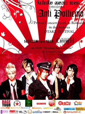 In Silver Church, tot vineri, are loc primul concert de J-Rock din Romania, in deschiderea Otaku Festival. Formatia Anli Pollicino s-a deplasat tocmai din Tokyo ca sa ne cante in stilul lor light-rock spre goth, incepand cu ora 20:00 – dar bondage fashion show-ul lui Lorand Coza care se va etala in club cu o ora mai devreme se anunta si el destul de tentant. Cei cinci membri coafati si colorati ai Anli Pollicino ne vor arata cum anume se integreaza influentele citate de ei in creatia muzicala proprie: un cocktail de Evanescence, Marilyn Manson, L'arc-en-Ciel sau Siam Shade, filtrat printr-un brand inedit de J-Rock teatral promite sa satisfaca o multitudine de gusturi.