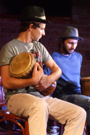 Energia respirata prin toti porii de show-ul Drum Up (care isi ia numele de la trupa) se bazeaza, v-ati dat seama poate din titlu, pe manuirea instrumentelor de percutie. Pe sistemul tobosarului Misu se bate un ritm, pe djambele africane se bate un altul, toate dictate si tinute la respect de cei trei magicieni. Pentru ca, da, Drum Up se constituie intr-o perpetua transformare, iar trecerile de la o stare la alta, de la pantomima la step, de la expresii faciale ca de plastilina la modulatii surprinzatoare in voce, de la djambe la didgeridoo – toate se fac pe nesimtite.