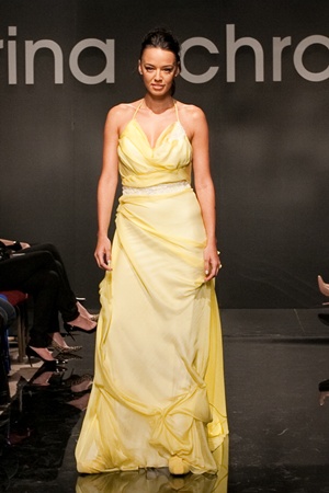 Andreea Raicu, imaginea casei de moda “Irina Schrotter”, a incheiat prezentarea desfasurata pe muzica live a trupei Publika, purtand o superba rochie de seara.