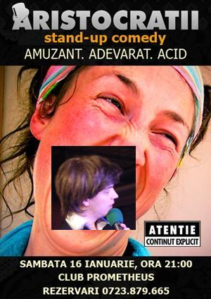 Am fost sambata trecuta la stand-up comedy cu trupa Aristocratii, care tocmai faceau tranzitia din Glendale in club Prometheus. Aceasta miscare s-a lasat cu ceva bataie de cap pentru cei trei baieti cucuieti, caci musteriii, fani ai trupei sau pur si simplu doritorii unei portii sanatoase de ras, “amenintau” sa nu mai conteneasca din navalit. Daca avem o trasatura caracteristica mai presus de istetimea-n smecherie si lenea balcanica, aceea e ca noi, romanii, facem haz.