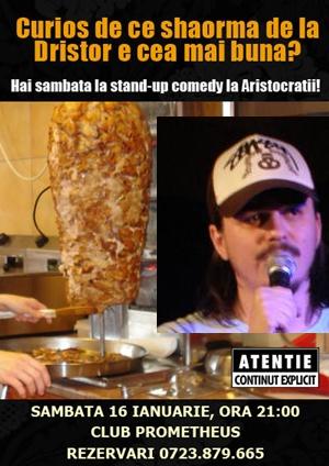 Am fost sambata trecuta la stand-up comedy cu trupa Aristocratii, care tocmai faceau tranzitia din Glendale in club Prometheus. Aceasta miscare s-a lasat cu ceva bataie de cap pentru cei trei baieti cucuieti, caci musteriii, fani ai trupei sau pur si simplu doritorii unei portii sanatoase de ras, “amenintau” sa nu mai conteneasca din navalit. Daca avem o trasatura caracteristica mai presus de istetimea-n smecherie si lenea balcanica, aceea e ca noi, romanii, facem haz.