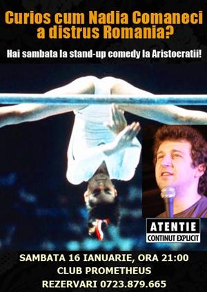 Am fost sambata trecuta la stand-up comedy cu trupa Aristocratii, care tocmai faceau tranzitia din Glendale in club Prometheus. Aceasta miscare s-a lasat cu ceva bataie de cap pentru cei trei baieti cucuieti, caci musteriii, fani ai trupei sau pur si simplu doritorii unei portii sanatoase de ras, “amenintau” sa nu mai conteneasca din navalit. Daca avem o trasatura caracteristica mai presus de istetimea-n smecherie si lenea balcanica, aceea e ca noi, romanii, facem haz.