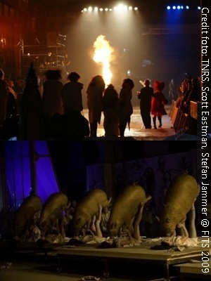 A fost un privilegiu sa vizitez Iadul alaturi de Faustul lui Gheorghe, cot la cot si de la acelasi nivel al solului cu zecile de personaje angajate-n destrabalare coregrafiata. Purcarete nici ca putea sa-si angreneze mai cinematic fortele, spatiul si decorurile care-i erau puse la dispozitie in Hala Balanta: acustica salii era valorificata la maxim de o formatie care interpreta live, pe fundalul ratacirii browniene a puzderiei de actori/draci/vrajitoare/etc. – toti participanti la acte hedonistice variate, cutremuratoare, parca desprinse dintr-o halucinatie LSD-ica!