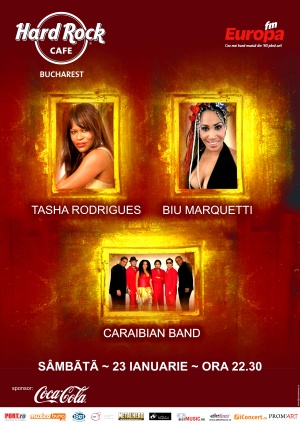 Tot sambata, “Orhideea Neagra” a muzicii africane, Tasha Rodrigues, va sustine un concert in Hard Rock Cafe, pentru a onora amintirea defunctei cantarete si activiste anti-apartheid “Mama Afrika” - Miriam Makeba. Tasha Rodrigues ne va accelera pulsul pe ritmurile muzicii Blu - salsa, bolero, bachata, merengue, cumbia sau cha-cha-cha – iar alaturi de ea vor pasi pe scena Biu Marquetti si trupa Caraibian Band.