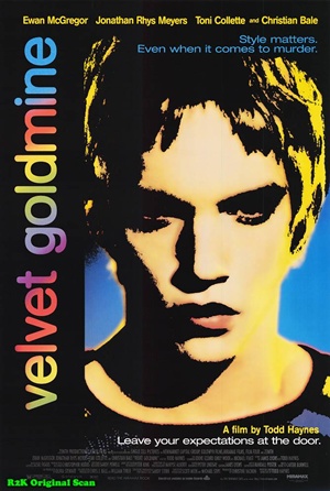 8. “Velvet Goldmine” (1998) – In anii ’80, reporterul Arthur Stuart scrie un articol despre glamrock-ul deceniului anterior, mai exact despre legendarul Brian Slade (Jonathan Rhys Meyers, intr-un rol David Bowie-esc) a carui flacara a ars puternic pe firmamentul roacarilor efeminati si debordand de sexualitate, tragandu-l inevitabil spre implozie. Investigatiile il conduc pe fostul fan Stuart intr-o gaura de iepure a trecutului unde dragostea se infratea cu flamboaianta, unde lui Slade i se aprindeau calcaiele dupa tovarasul de chitari Curt Wild (Ewan McGregor, oglindindu-l pe Iggy Pop) – si viceversa. Prima scena e clara, si fiorul electric si actorii de la poli sunt la vedere – a doua, insa, vine cu o nota de subsol: Curt e in toiul exprimarii artistice, privit de Slade si de sotia lui, iar tensiunea sexuala a triunghiului devine incarcata, de tonuri nostalgice, grele, percepute intocmai de Arthur, si de noi.