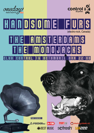 Vineri seara (16 octombrie) a avut loc al doilea concert sustinut de duo-ul canadian de electroclash Handsome Furs, si pentru a doua oara am fost prezenta-n primul rand cu ochii cepe si urechile palnii. Chemati de One Day, ca acum cinci luni, si de aceasta data cuplul energic a ales clubul Control pentru a se desfasura, in cadrul initiativei Indie Nights Live care aduce din ce in ce mai des pe scenele romanesti trupe nu neaparat nesemnate cat mai degraba doar necunoscute publicului de-aici.