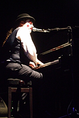 Martyn, machiat ca un clovn de cosmar si manuind acordeonul pestrit reconditionat, chitara miniaturala, sau clapele pianului, se uita chioras la noi, cu o superioritate asumata, exacerbata si categoric hilara. Cu o voce ba pitigaiata, ba ragusita, vorbea despre “Lust” (pofta carnala) gadiland fildesul pianului cu un... vibrator de cauciuc; canta despre cum se usura pe mormintele lui Dumnezeu si al diavolului deopotriva, printre multi altii care aveau parte de acelasi tratament (“Piss On Your Grave”); si isi marturisea pasiunea pentru declansarea incendiilor fara numar, instigand tinerii sa “Start a Fire”.