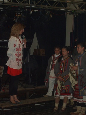 Lu a primit cadou de la copiii incotosmanati in port traditional o ie, pe care s-a grabit sa o imbrace inainte de a urca pe scena pentru a explica rostul unei cutii de donatii instalate alaturi, si cauza aferenta ei. Se pare ca micutii talentati viseaza la a-si scoate un CD, iar publicul a fost invitat sa contribuie la realizarea lui, fie prin donatii fie prin achizitionarea albumului “Red” al cantaretei – fondurile urmand sa ajunga, cu ajutorul CharityGift.ro, in totalitate si-n exclusivitate la grupul “Colinde”.