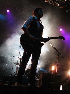 Spre deosebire de dinamicii lor predecesori, cei trei baieti veniti din Atena sa ne cante sub denumirea Decomposer faceau o impresie mai calmanta. Daca basistul Nikos s-a urnit din loc pe toata perioada mini-concertului, mie nu mi-a ramas momentul insolit si fugar intiparit pe retina – era pesemne unul dintre aceia care se consuma pe interior, facandu-si treaba de altfel fara loc de carteala critica, dar si fara pic de sentiment la vedere. Intreractiunea cu publicul picase in poala solistului, care multumea si se adresa des publicului intr-o romana perfecta – chiar atat de simpla e limba noastra, sau poate fratii Nikos si Ilias ascund un romanas prin arborele genealogic?