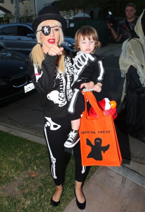 Christina Aguilera a plecat sa ceara bomboane prin vecini, in Los Angeles, California, alaturi de fiul ei Max. Cei doi purtau costume pereche, de schelete ambulante, iar cantareata a plusat, facand chiar un melanj intre oase si petecul de-un ochi, ambele arborate de pirati. Yarr!