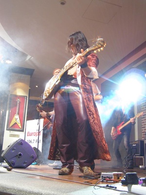 Trupa italiana Eurosmith, intitulata sugestiv dupa mai cunoscutul ei idol si punct de referinta, Aerosmith, si-a meritat pe deplin tam-tam-ul promotional cu care-i fusese anuntata descinderea-n Hard Rock Cafe. Daca aniversarea a doi ani de existenta a HRC-ului din Capitala ii indreptatea pe organizatori sa pluseze cu sfoara-n tara, la concertul de sambata am bagat de seama ca, de data asta, laudele chiar se dovedeau nimerite la fix membrii Eurosmith au facut un show pe masura faimei lor de tribute band Aerosmith, un statut insumand mai mult de un deceniu de activitate (din 1997, mai exact) pe care il intretin cu foc si talent pe masura evergreen-urilor interpretate.