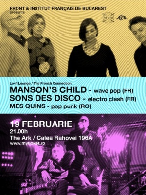 Vineri, de la ora 21:00, la sediul bursei de marfuri, cunoscut si sub numele lui hip, FRONT/The Ark, doua trupe franceze vor sustine un concert care se anunta a fi pestrit, ca influente si sound. Ce ne intriga la lineup-ul French Connection-ului de vineri este alaturarea greu de conceput intre indie pop-ul celor de la Manson's Child si electro-ul de inspiratie opt- si noua-zecista a duo-ului Sons Des Disco – mai mult, evenimentul devine unul tripartit, si cu atat mai eclectic, cand in deschidere canta pop-punkerii romani de la Mes Quins. Allons-y!