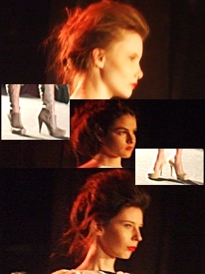 Hainutele ca hainutele – dar incaltarile...! Botinele mai ales mi-au lasat gura apa, iar coafurile cu suvite razlete, in stil voit ciufulit, proiectau o imagine foarte estivala, in contextul in care afara crivatul vuia de zor si troienea Capitala. Asa imi imaginez c-ar arata zeitele din inaltimile olimpiene. Imbracate in rochite creponate, satinate, bufante si/sau cu imprimeu delicat, fetele defilau parca sa-i faca-n ciuda iernii – si totul intr-o cheie usor copilareasca, intr-un stil baby-doll temperat cu o nota de eleganta nelipsita niciuneia dintre creatiile expuse.