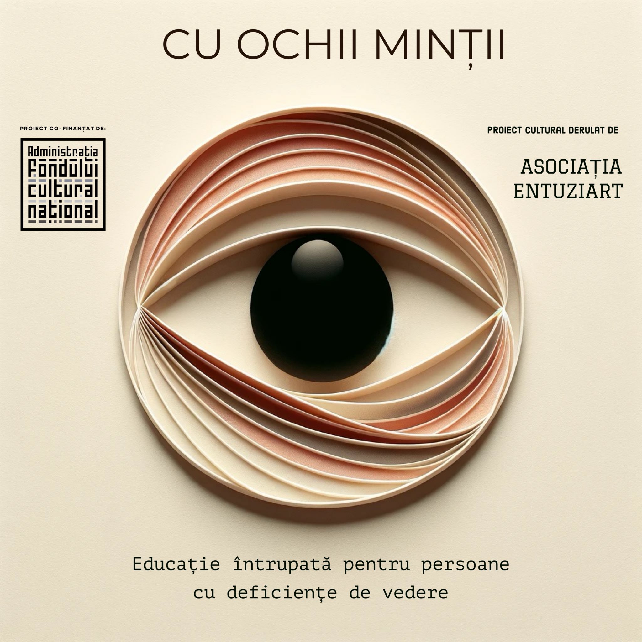 Proiectul "CU OCHII MINȚII" marchează un nou capitol în misiunea Asociației Entuziart de a deschide porțile către o lume în care arta și terapia se îmbină pentru a oferi speranță și oportunități egale de exprimare și participare culturală pentru toți membrii societății noastre.